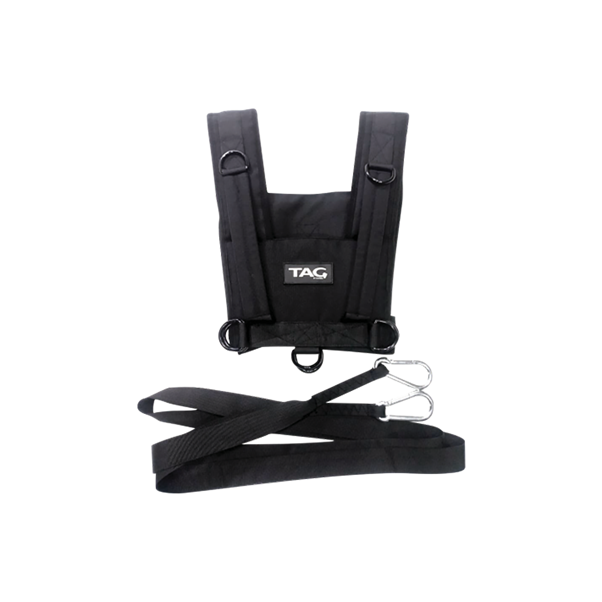 • Waist strap is 19.5”L x 1.5”W, secured to the harness with reinforced stitching